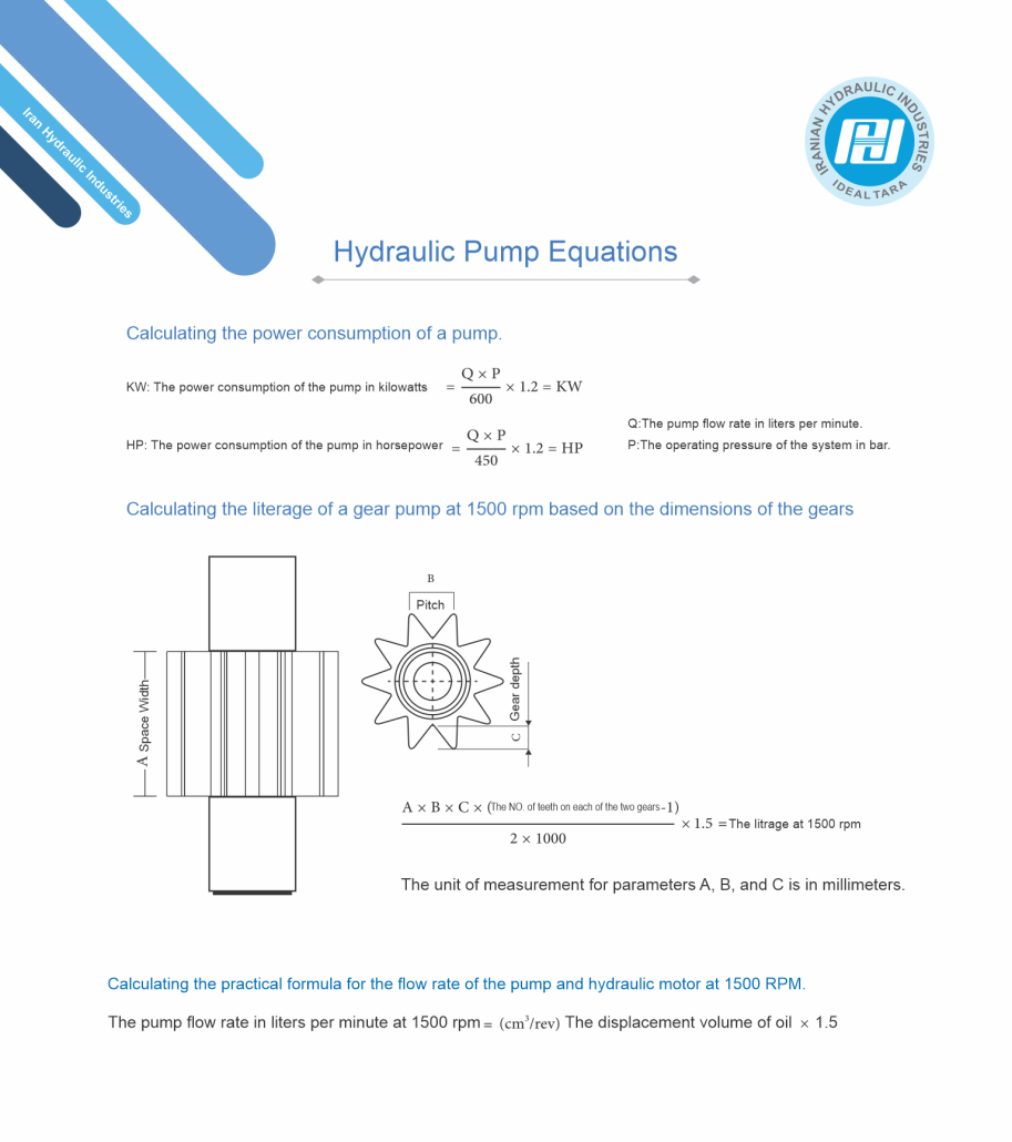 To download the file related to the Hydraulic Pump Equations, please refer to the product catalogue, page 50.