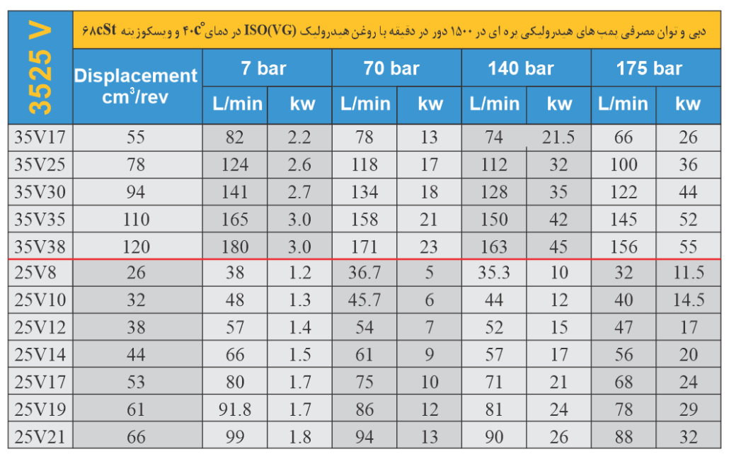مشخصات فنی پمپ هیدرولیک پره ای (کارتریجی) دوبل – مدل 3525V