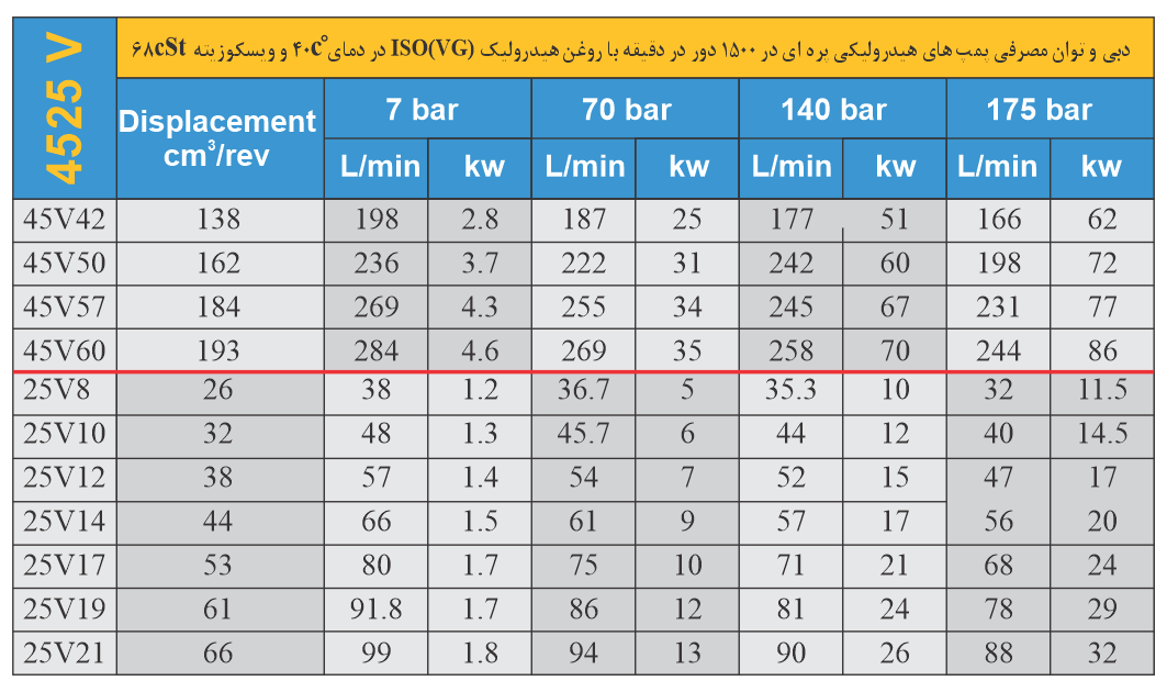 مشخصات فنی پمپ هیدرولیک پره ای (کارتریجی) دوبل – مدل 4525V